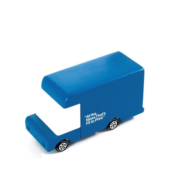 Notícia de última hora: um novo camião do Times está a chegar à Toy Town. Com o tamanho ideal para jovens leitores e colecionadores adultos, a simpática carrinha de 8,9 cm foi inspirada nos veículos de entrega azuis e brancos do The New York Times que percorriam as estradas dos três estados há mais de 35 anos. Feita de madeira maciça e disponível em quantidades limitadas.