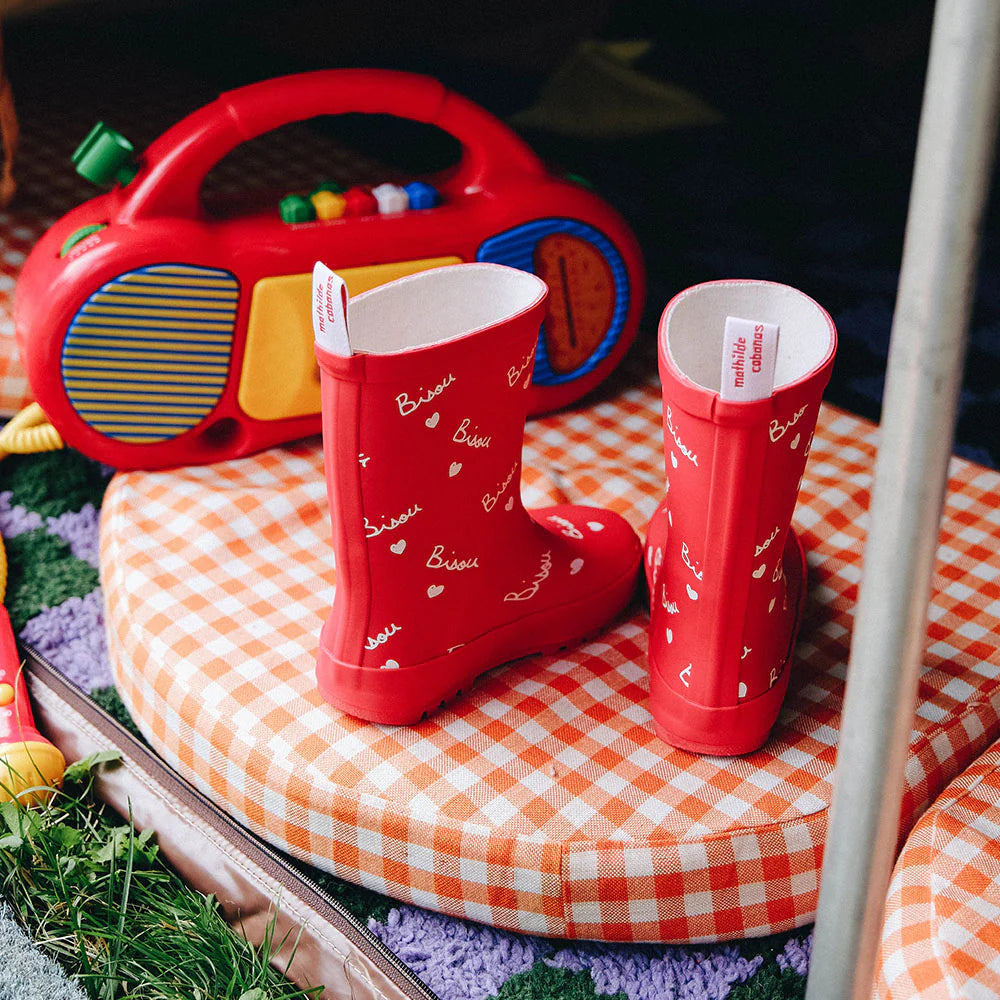 Tested in the most extreme conditions ( giant puddles, torrential rain, over-excited children ), Mathilde Cabanas' rain boots transform mud into rainbows and raindrops into little hearts – in other words, pure happiness on grey days!