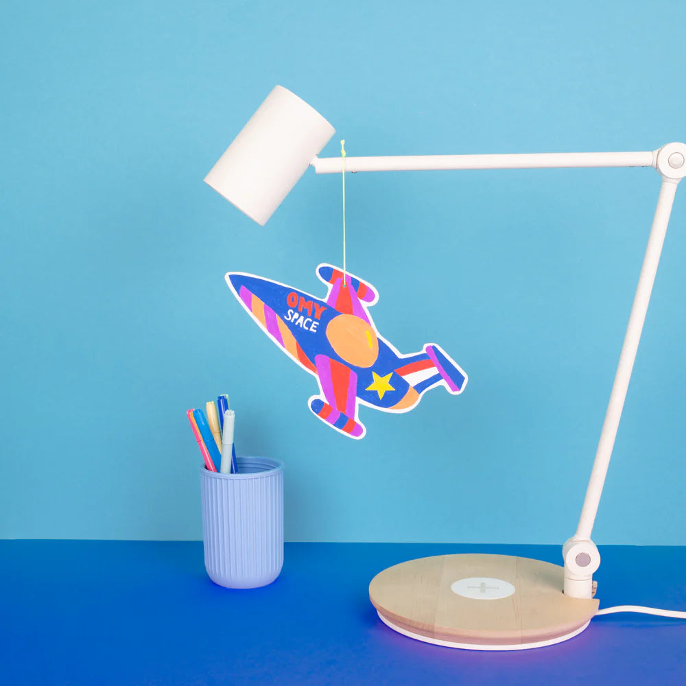 The kit already contains all the necessary materials: 1 brush, 6 cans of acrylic paint (1 fluorescent), 6 drawings and 1 string to hang them.