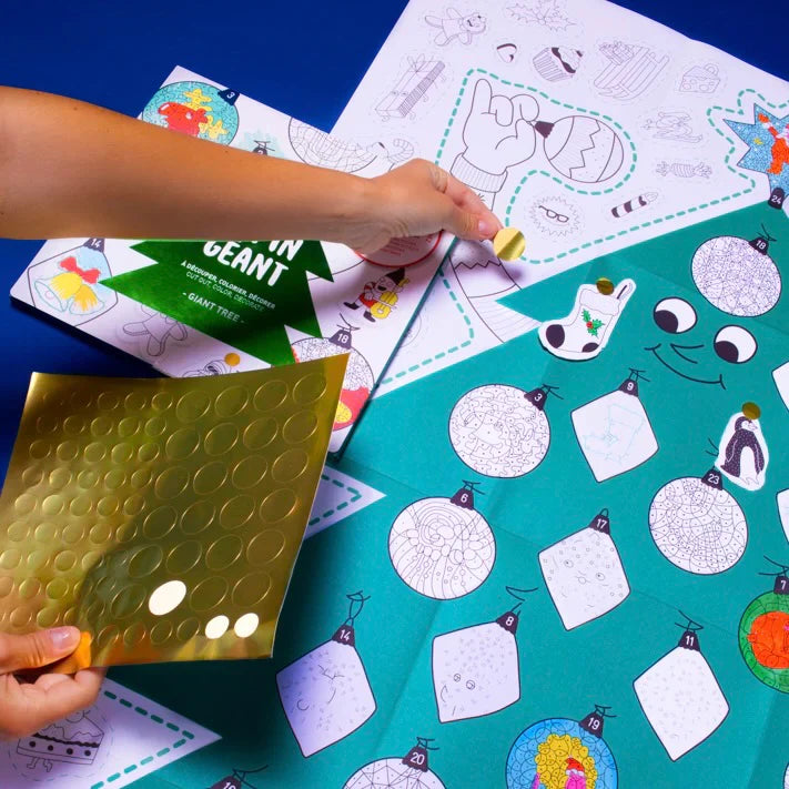 Inclui folhas de autocolantes para decorar a árvore, bem como 24 jogos surpresa para descobrir. Desafio: terminá-lo antes da meia-noite de 24 de dezembro. Este poster gigante em forma de árvore de Natal, com 50 desenhos, permite aos mais pequenos colorirem e decorarem o seu próprio pinheiro, oferecendo horas de diversão durante a época festiva. Praz um toque especial à decoração natalícia e é uma excelente atividade para crianças de todas as idades.