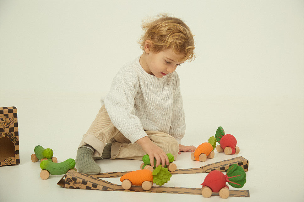 Criados com uma atenção meticulosa, cada carro é feito à mão, pintado com pigmentos naturais e fabricado em borracha 100% natural, sem plástico ou silicone e em madeira FS.