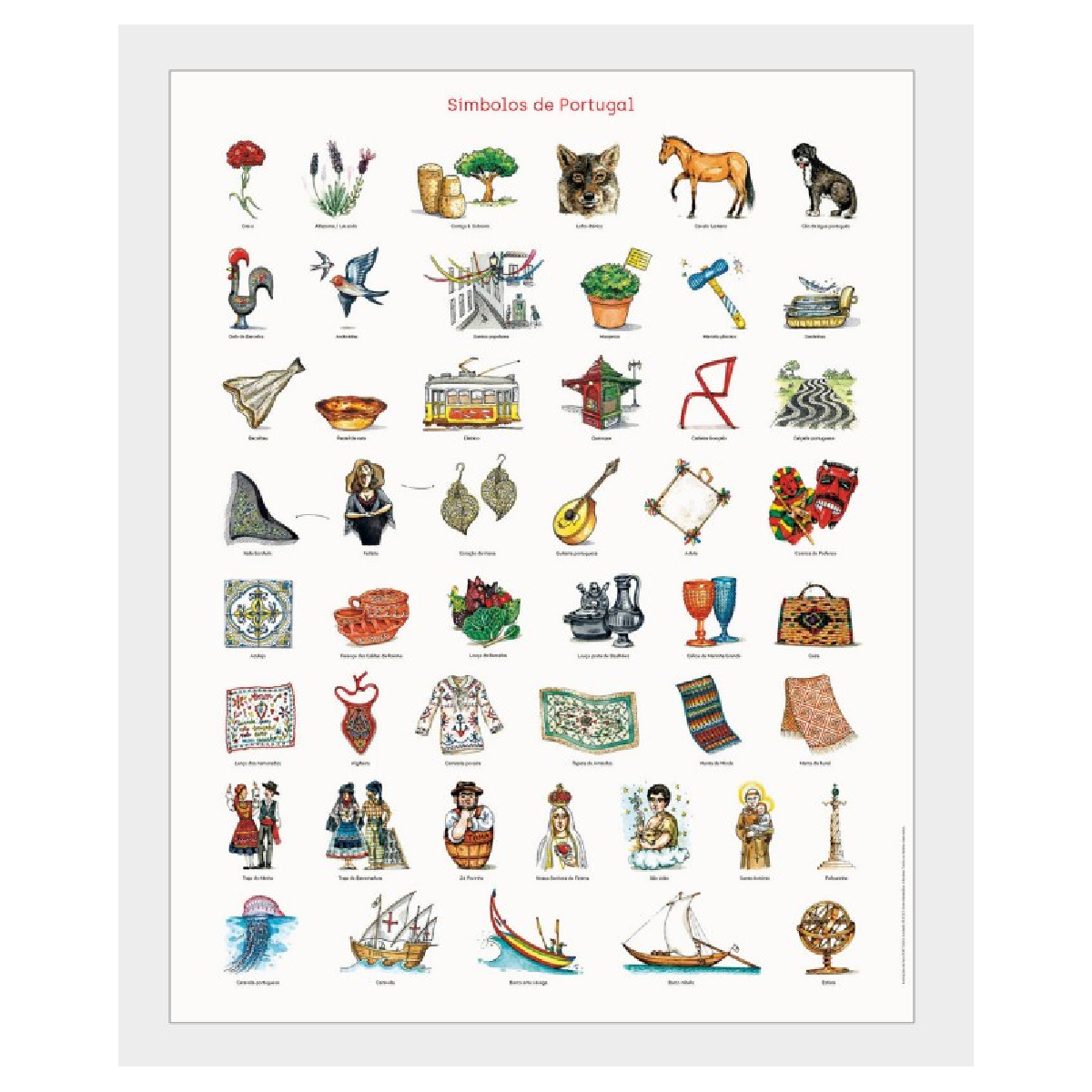 Cartaz ilustrado dos Símbolos de Portugal, a partir das ilustrações do livro Portugal ilustrado.