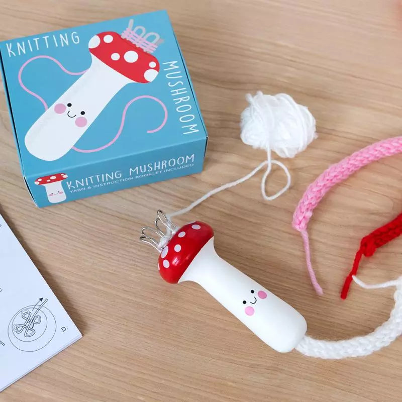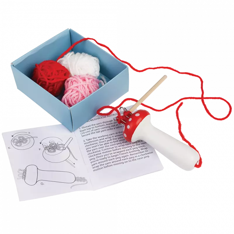 Comece a fazer tricô francês com este bonito cogumelo de tricô. Uma óptima maneira de iniciar as crianças no tricô.
