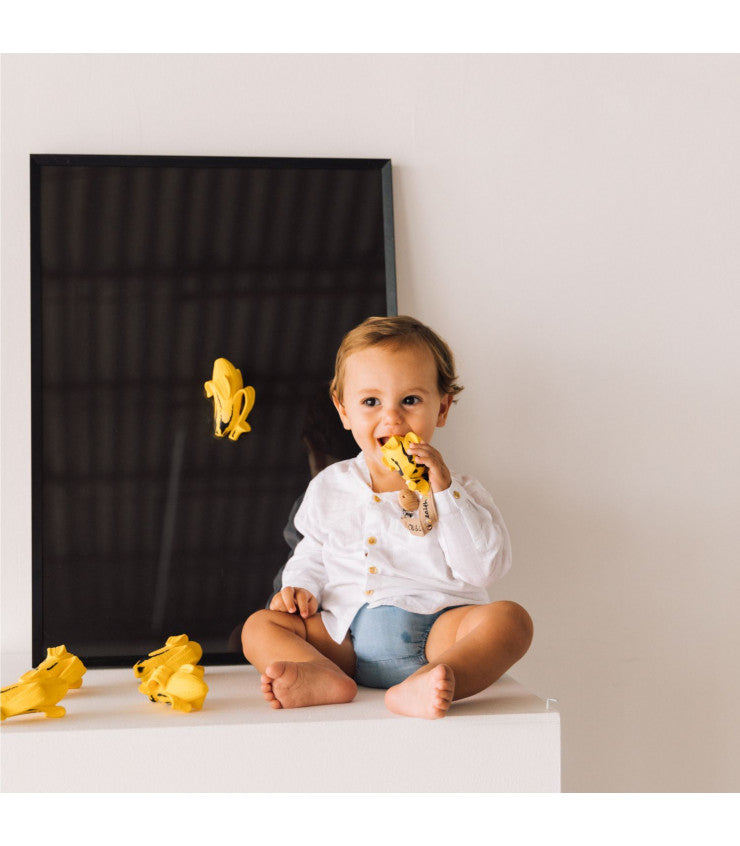 Esta edição limitada é perfeita para introduzir as crianças no mundo da arte e da criatividade. Feita de borracha 100% natural e pintada à mão com pigmentos naturais. Ideal como mordedor, brinquedo de banho e brinquedo sensorial. As cores vibrantes, as texturas complexas e a forma ergonómica estimulam os sentidos dos bebés enquanto acalmam as gengivas durante a dentição! Macio e flexível para ser facilmente agarrado pelas mãos do bebé, e também concebido para ser pendurado.