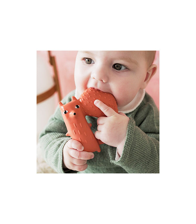 Feito à mão com borracha 100% natural de árvores Hevea e pintado à mão com pigmentos naturais. Sem PVC, BPA, ftalatos e nitrosaminas.