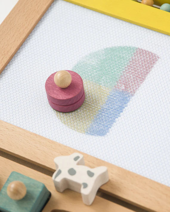 Use os selos magnéticos e a caneta para criar desenhos multicoloridos na tela mágica de 4 cores. Depois, deslize o cãozinho ao longo do quadro para apagar e voilá! De volta a uma ardósia limpa.