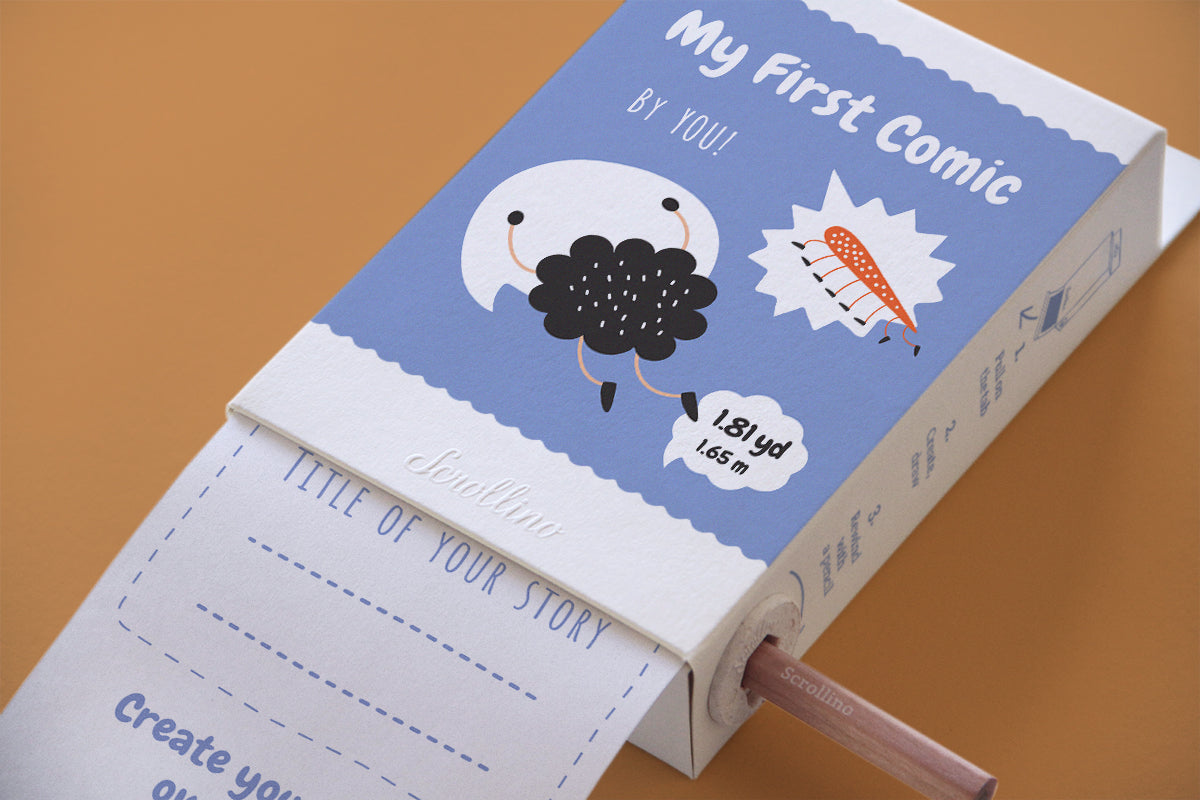 Quer tornar-se um artista de banda desenhada? Ou gosta apenas de desenhar? Com o Scrollino® My First Comic, desenhe as suas próprias personagens ou utilize personagens que já conhece e deixe-as soltas na página. Os quadros de banda desenhada vazios guiá-lo-ão na criação da sua própria história. Quando acabar, mostre a tua banda desenhada aos teus amigos e à tua família!