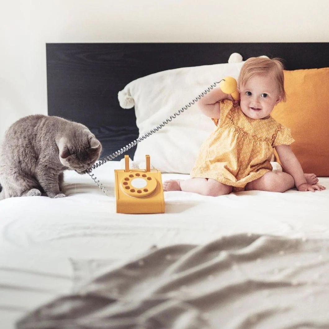 Brincar ao telefone é o que as crianças sempre gostaram ao longo dos anos... Uma forma retro nostálgica que é também um bonito objeto de decoração de interiores.